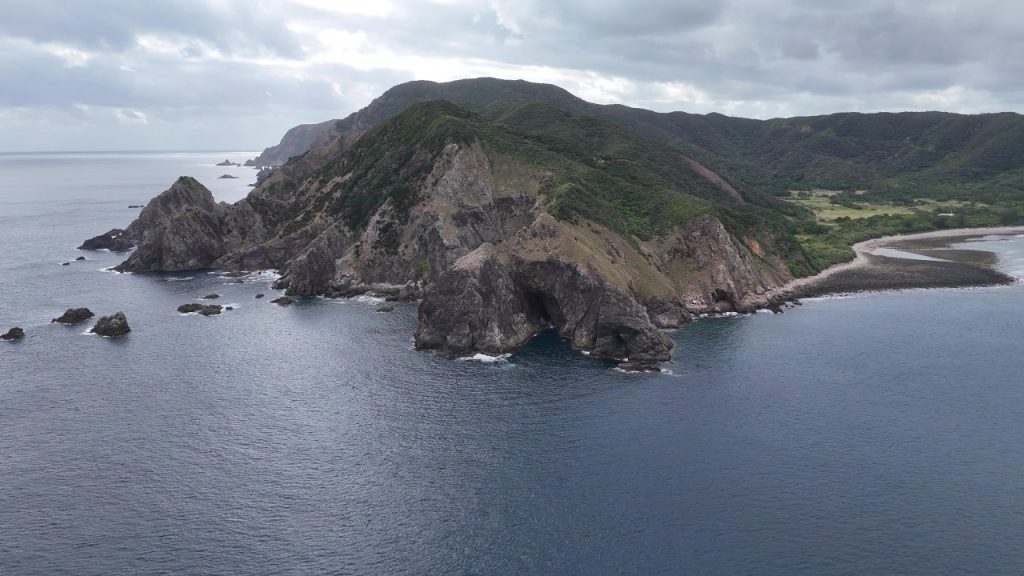 Yadorihama Beach. The camp ground is located on the right side of the image.