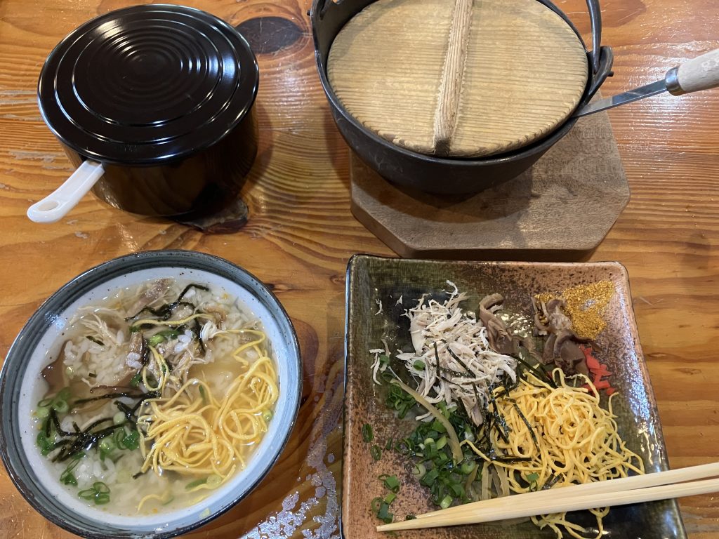 Keihan, a chicken and rice soup, is the soul food of the Amami Islands. It is made with steamed rice, shredded chicken, eggs, shiitake mushrooms, citrus peel, papaya pickles, green onions, and nori, or dried seaweed. I have eaten Keihan at many popular restaurants. My favorite was at Restaurant Aikana in Hotel Sun Days Amami. It is located near Naze Port. It’s very easy for tourists to access. Keihan Hisakura is another good restaurant. It is located in Tatsugo and is open from 11 a.m. to 4 p.m.