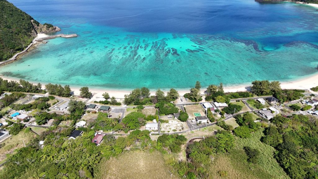 Just as this image shows that small villages are scattered around Kakeroma Island.