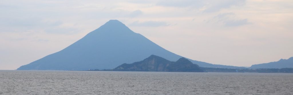 A view of Kaimondake from the ferry. It is also an active volcano.
