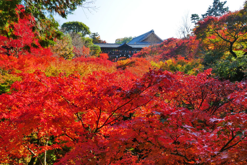 Tōfuku-ji Temple, the head temple of the Tōfuku-ji branch of the Rinzai school of Zen Buddhism, is one of Kyoto’s most popular spots for viewing autumn foliage. The temple’s vast grounds are home to approximately 2,000 Japanese maple trees that transform the entire area into a sea of crimson during the peak viewing period from mid to late November.