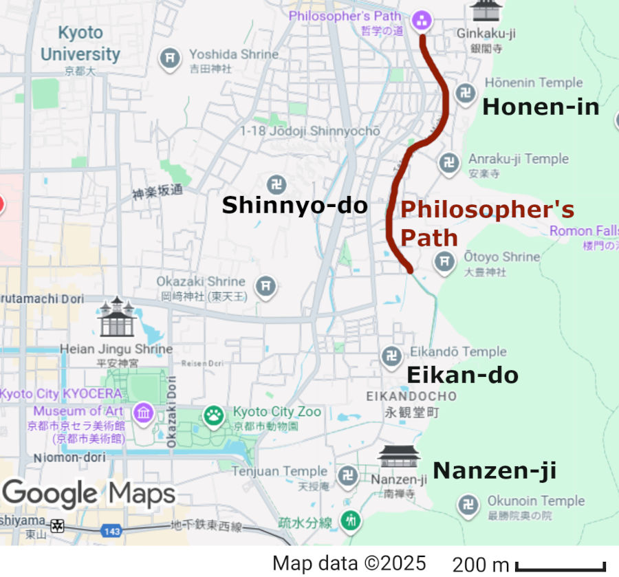Nanzen-ji Temple, Eikan-do Temple, Honen-In Temple and Shinnyo-Do Temple are located around the Philosopher’s Path and within walking distance of each other. It is a good idea to visit all or some of these tourist attractions.