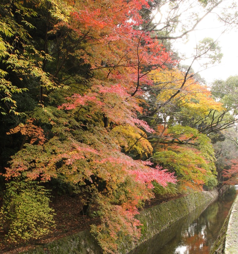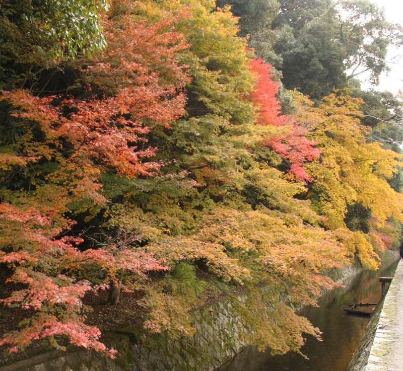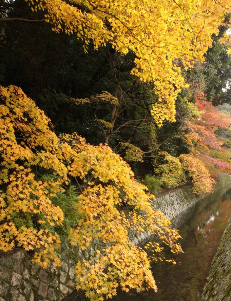 The Philosopher’s Path is famous for its cherry blossoms in spring. However, there are many maple trees on the east side of the path. The maple trees over the Lake Biwa Canal are stunningly beautiful.