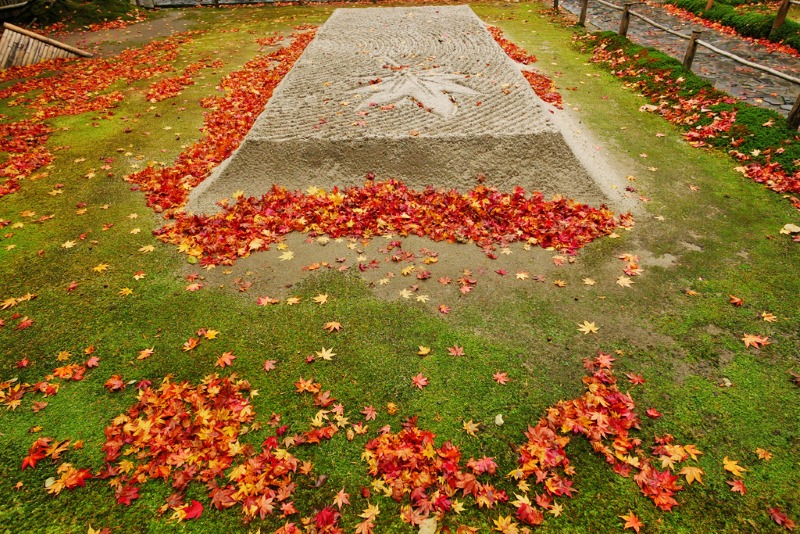 One particularly noteworthy view is the foliage seen from the Tuten-Kyo Bridge. The vivid valley scenery offers a breathtaking view. The temple also feature attractions like the Sanmon Gate, designated National Treasure, and the Honbō Garden, known for its Zen garden and distinctive checkerboard pattern garden.