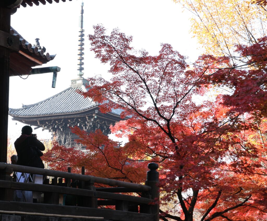 Kiyomizu-dera Temple is one of the most famous temples in Kyoto, with tourists visiting all year round. While it is renowned as a cherry blossom spot, the temple is also considered a prime location for viewing the magnificent autumn foliage.