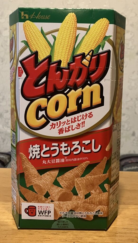 There are several flavors of Tongari-corn. This one is grilled corn flavor. Plain salt, salt vanilla, and honey butter flavors are also available.