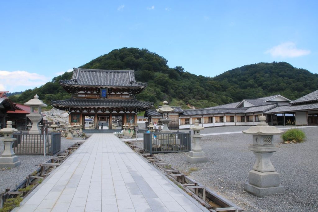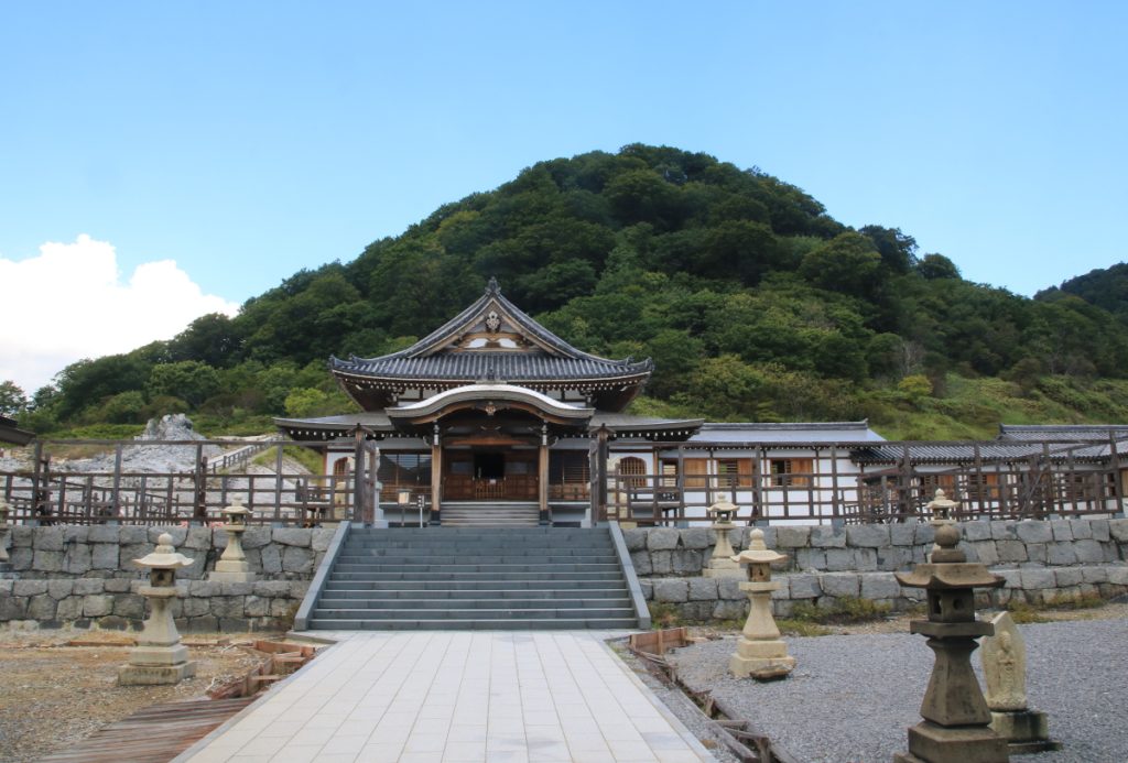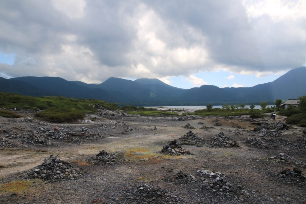 Osorezan Mountain is a dormant volcano, and there are four onsen, or hot spring baths, in the area. You can use them for free. You can also stay at the Kitijyoukaku (吉祥閣). The cost for a one-night stay is 17,000 yen per person and includes dinner and breakfast. However, it does not include the 700-yen admission fee to Osorezan. Unfortunately, the website is only available in Japanese.