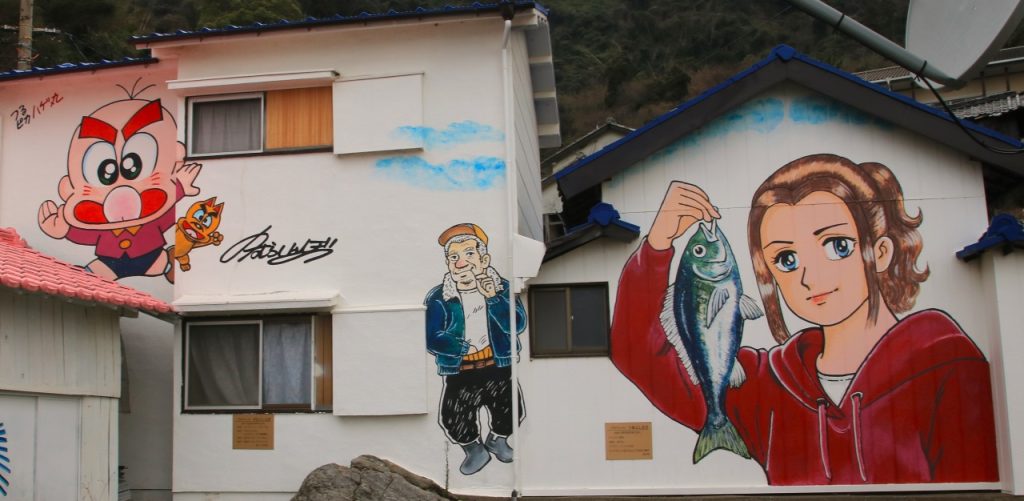 To save the island from extinction, the residents got help from artists to create an island of manga art. Now, the walls are adorned with images of many well-known manga characters, and tourists like me have come to the island to enjoy them despite its inconvenient location.
