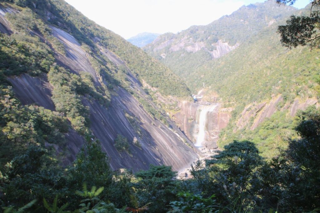 Yakushima is a round island located about 60 kilometers south-southwest of the Osumi Peninsula in Kyushu. It covers an area of about 504 square kilometers. There are many mountains on Yakushima, and Mt. Miyanoura-dake, at 1,936 meters, is the highest mountain in Kyushu. Moist air from the sea hits Yakushima’s high mountains and releases a lot of water. The annual rainfall in the mountainous regions ranges from 8,000 to 12,000 millimeters. Heavy rain has created dense and unique forests. Some say it rains 35 days a month in Yakushima; it rained every day that I was there.