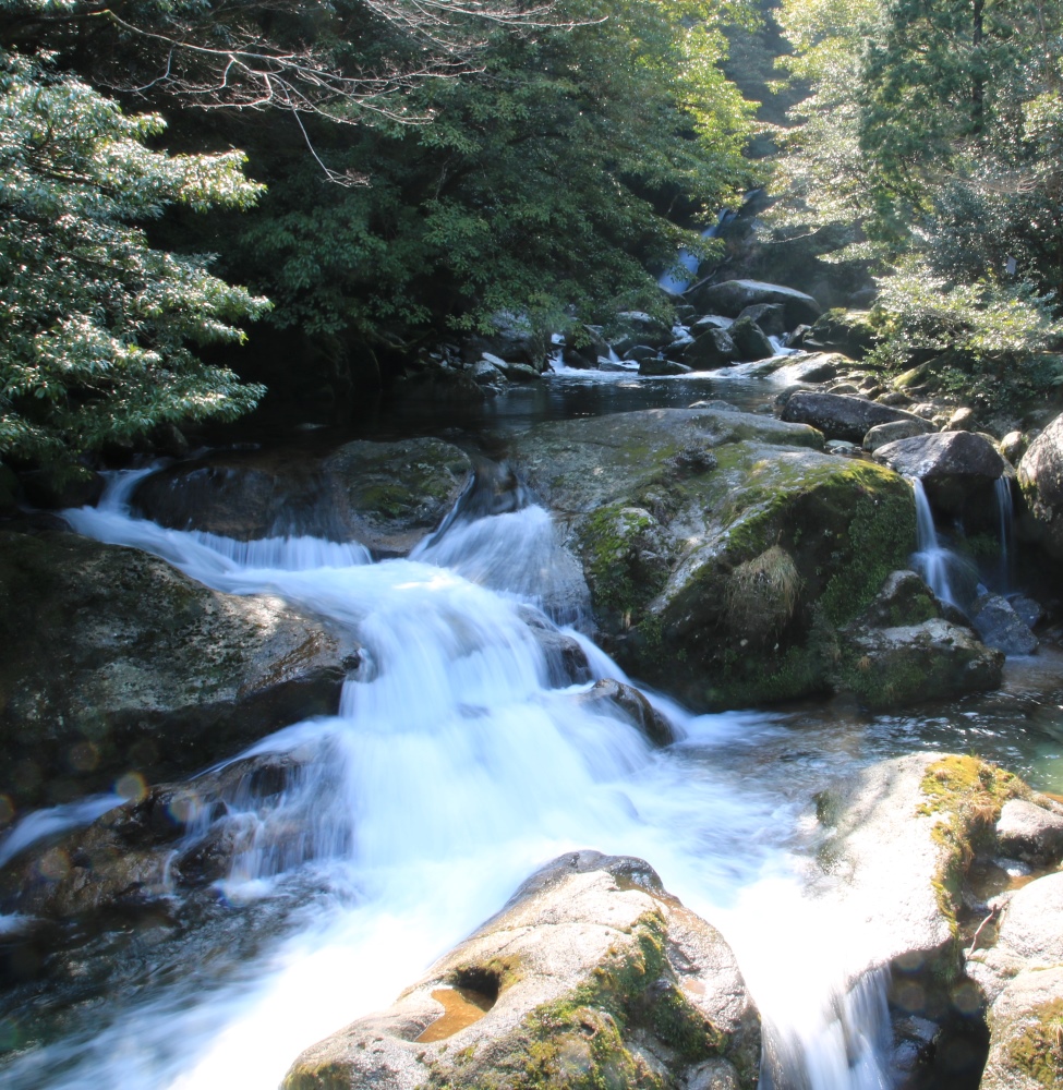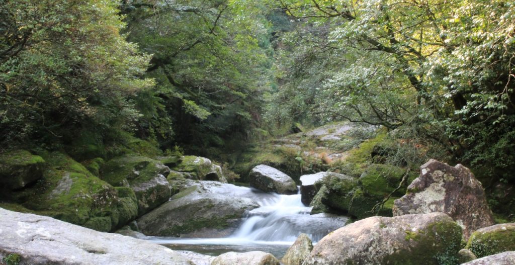 The Shiratani Unsuikyo Forest is believed to have inspired Hayao Miyazaki’s anime film Princess Mononoke. As soon as I stepped into the forest, I felt as if I were in the film. The rocks are covered with moss, and the air is pure and humid. There are three hiking trails in Shiratani Unsuikyo: The shortest is the Yayoi Cedar course, which takes about an hour to walk (2 km). The Bugyo Cedar course takes about two hours to walk (4 km), and the longest is the Taikoiwa Round Trip course, which takes about four hours to walk (5.6 km). These courses are not technically difficult.